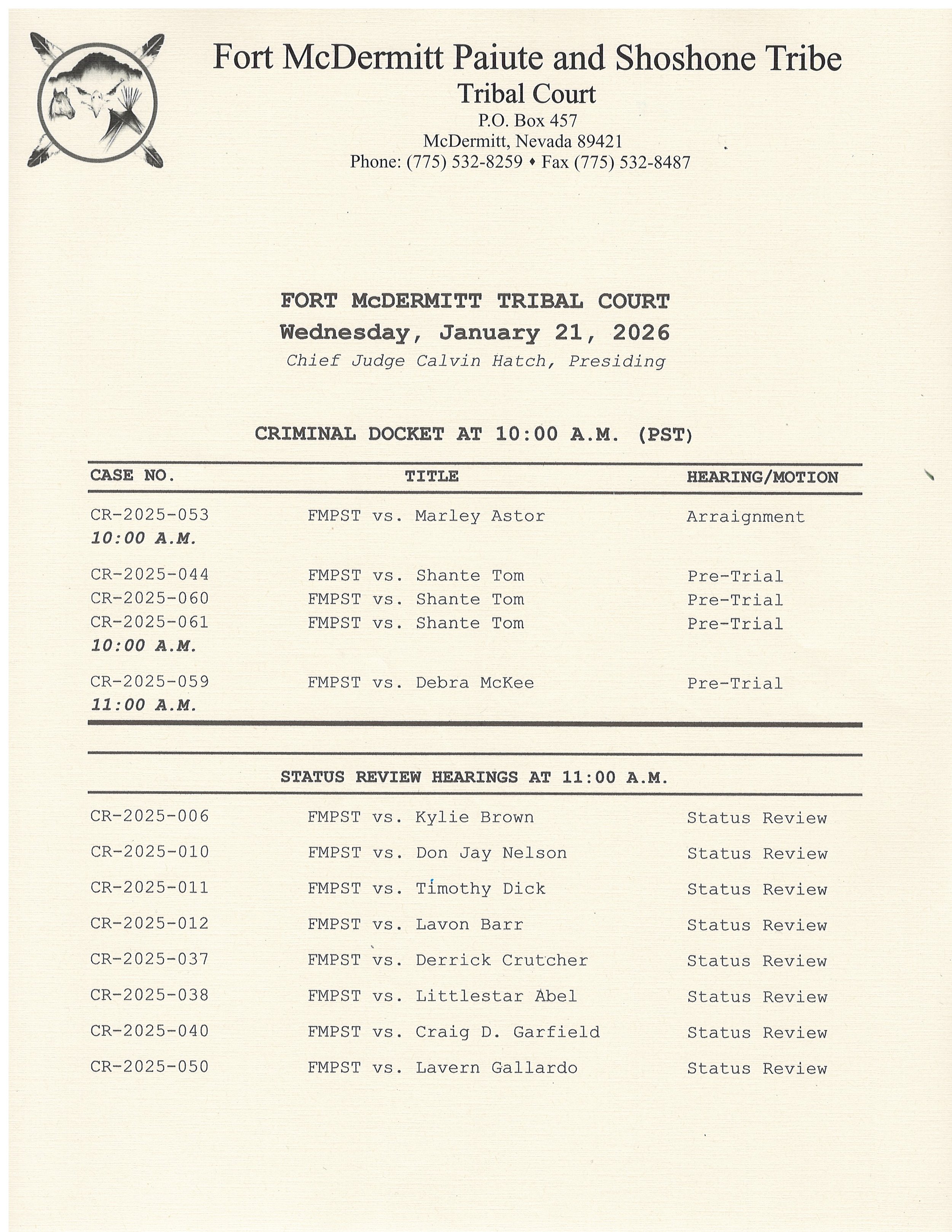 TRIBAL COURT DATES