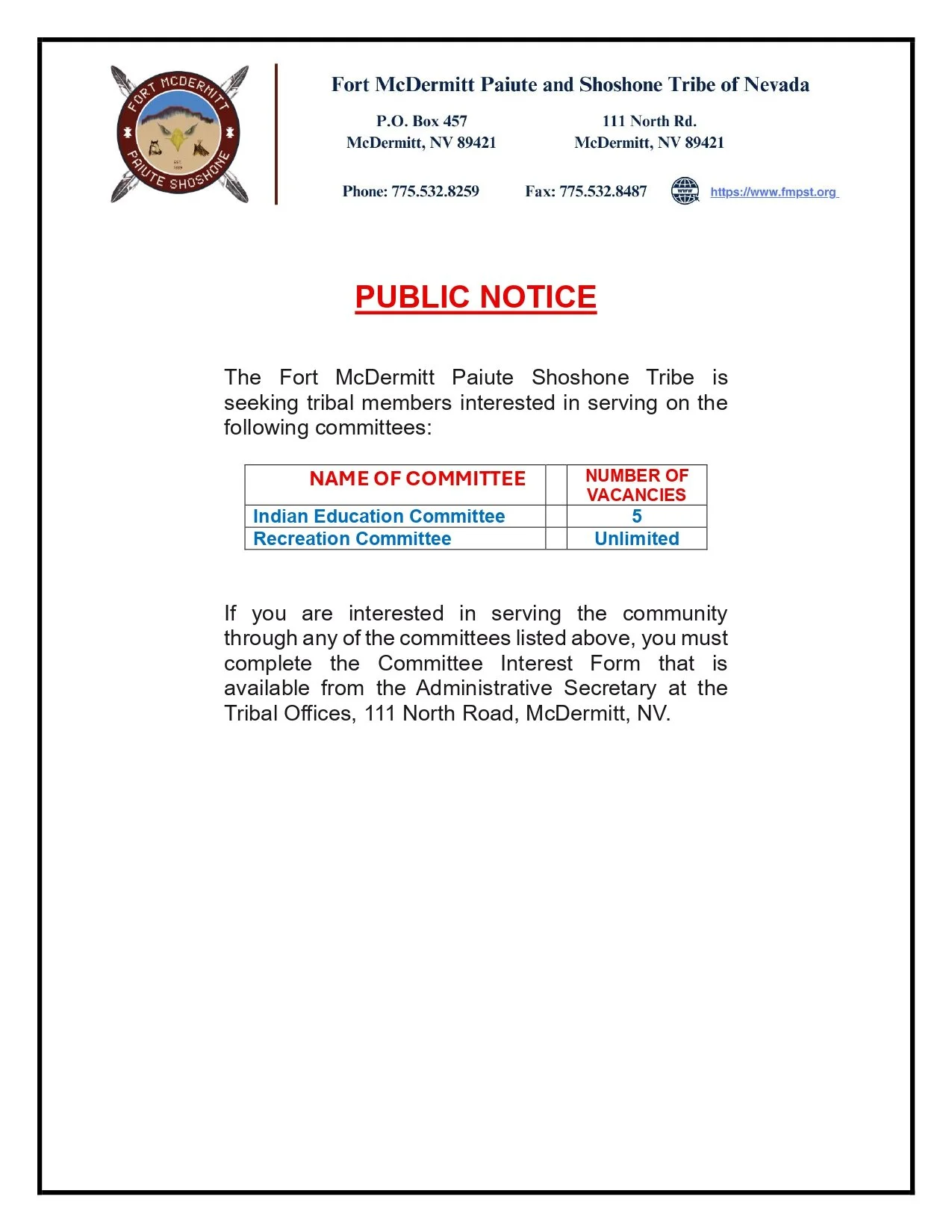 MARCH 13, 2026: COMMITTEE VACANCIES