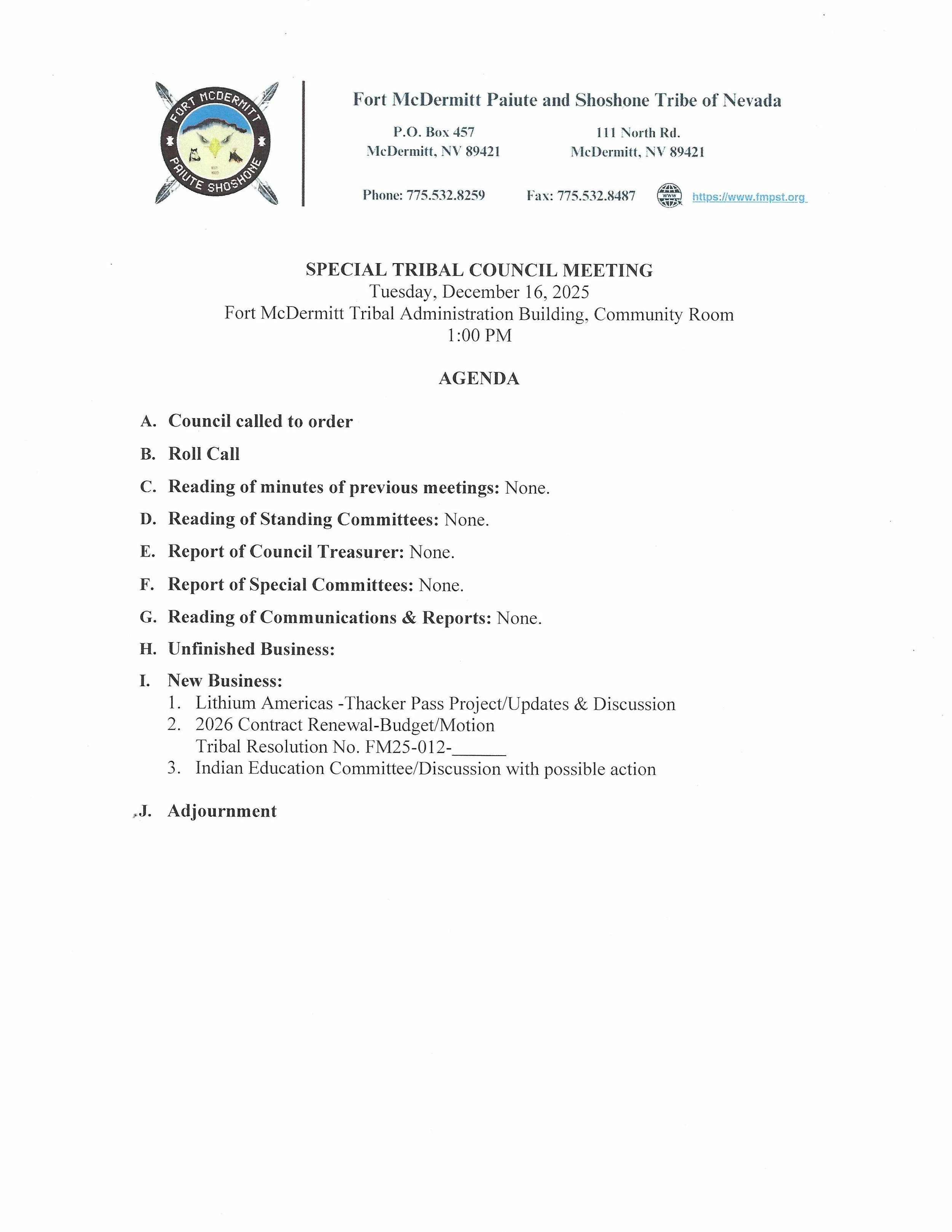 DECEMBER 16, 2025: SPECIAL TRIBAL COUNCIL MEETING